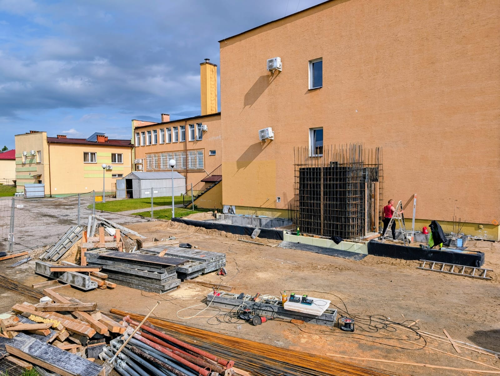 Zakres inwestycji obejmuje rozbudowę istniejącego budynku Urzędu Gminy poprzez wykonanie nowej klatki schodowej oraz szybu windowego. Konstrukcja schodów i szybu zostanie wykonana w technologii żelbetowej monolitycznej. W części dobudowywanej zaprojektowano ściany z bloczków gazobetonowych.